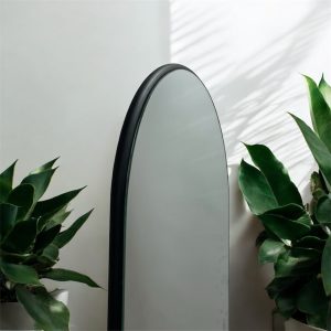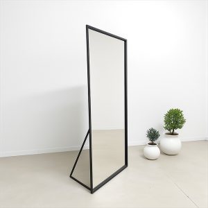 این آینه باریک بیضی ایستاده مشکی MR110 قدی پایه دار و ایستاده است.
