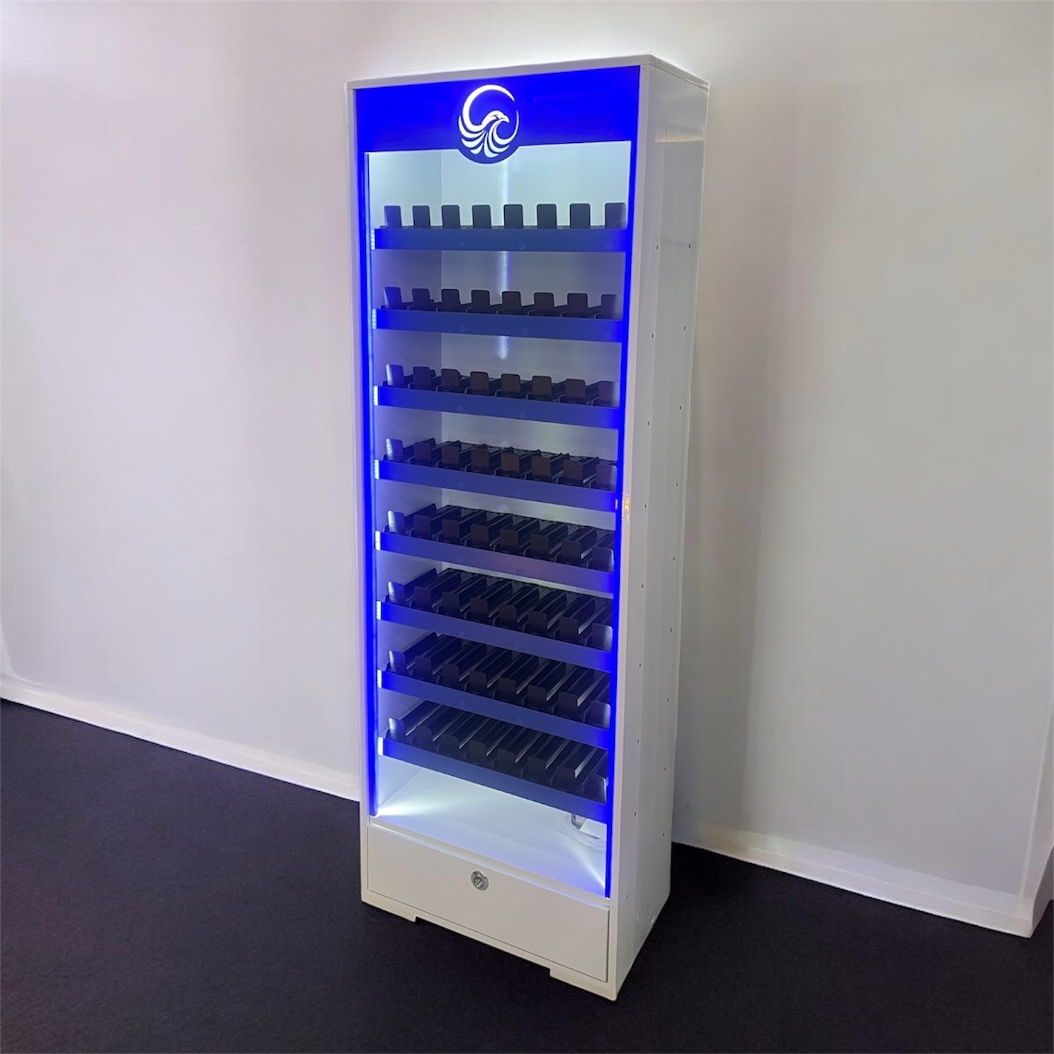در بخش پایینی استند یک کشوی کاربری با عمق30 سانتیمتری  در نظر گرفته شده  که برای  نگهداری موجودی اضافی  یا اقلام جانبی بسیار مناسب است ساختار ایستاده و طراحی استاندارد  این استند باعث می شود بدون اشغال فضای اضافی بیشتر بازدهی را در محیط فروشگاهی داشته باشد