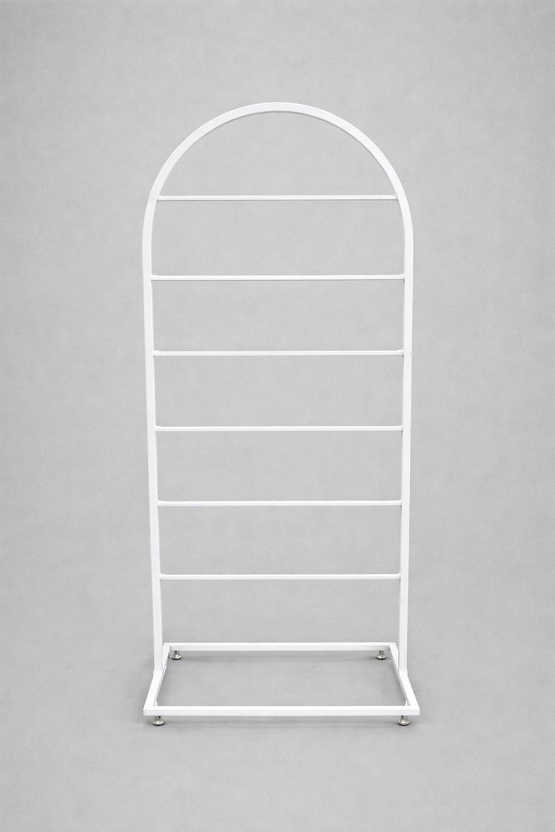 استند کاغذ کادو یک سازهی فلزی کاربردی و زیبا برای نمایش منظم رولهای کاغذ کادو در فروشگاههاست. طراحی این استند بهصورت عمودی و آویز انجام شده تا کاغذها بدون تاخوردگی و با دید کامل در معرض انتخاب مشتری قرار بگیرند. فرم قوسدار بالای استند، ظاهری مدرن و مینیمال ایجاد میکند و باعث هماهنگی بهتر با دکور فروشگاه میشود.