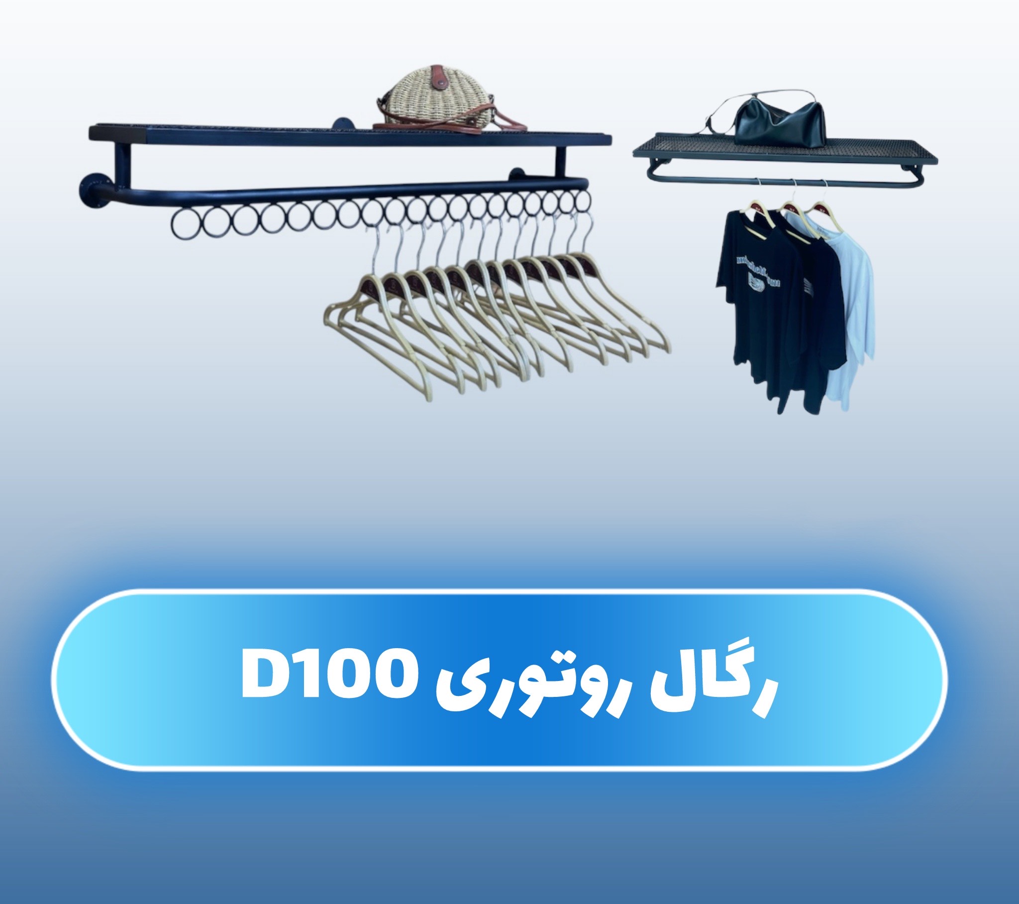 این رگال دیواری روتوری زیرحلقه D100 دارای زیرحلقه برای آویز لباس و در رنگ مشکی و طلایی و سفید به فروش می رسد.