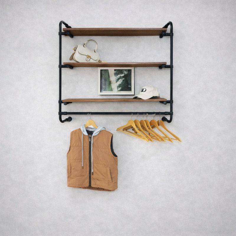 رگال دیواری سه طبقه D116 دارای سه طبقهی چوبی مستحکم است که میتوانید انواع کیف، کفش، اکسسوری و دکوری را روی آن بچینید.