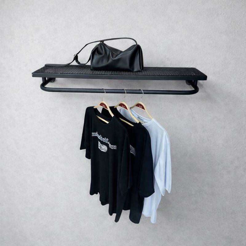 این رگال لباس دیواری روتوری D100 دارای فضا برای آویز لباس و قرار دادن کیف و کفش در روی رگال می باشد در رنگ مشکی و طلایی و سفید به فروش می رسد.