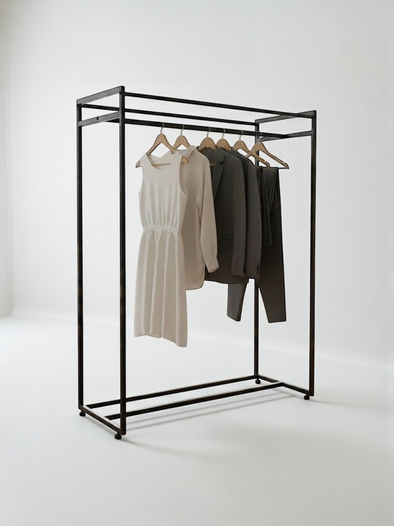 از مزیت های رگال مزونی دو طرفه این است که در دو طرف رگال قابلیت آویز لباس داشته و با اشغال فضای کمتر لباس بیشتری آویز می شود.