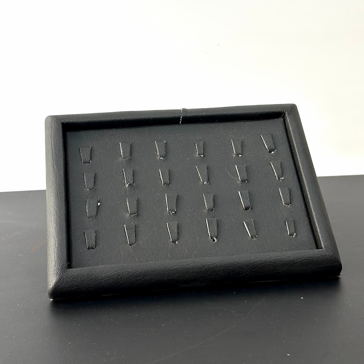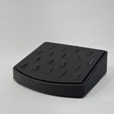 سینی انگشتر تخت چرم مشکی MJ101 برای نمایش جواهرات در فروشگاه های طلا و بدلیجات استفاده میشوند.